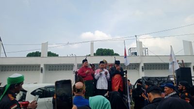 SATYABAKTI, SUMUT – Massa yang tergabung dalam Solidaritas Rempang Galang menggelar aksi unjuk rasa (Unras) di depan Taman Makam Pahlawan (TMP), Jl. Sisingamangaraja, Kec. Medan Kota, Kota Medan, Jumat (15/09/2023).